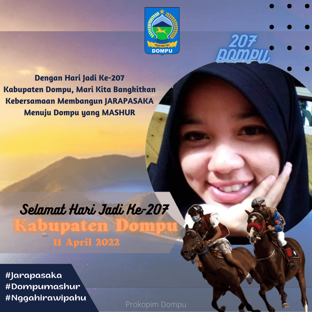 Dalam menyambut Hari Jadi kabupaten Dompu ke-207 tahun 2022, Kamu bisa menggunakan desain bingkai atau twibbon beriktu ini untuk dipasang di profil media sosial.